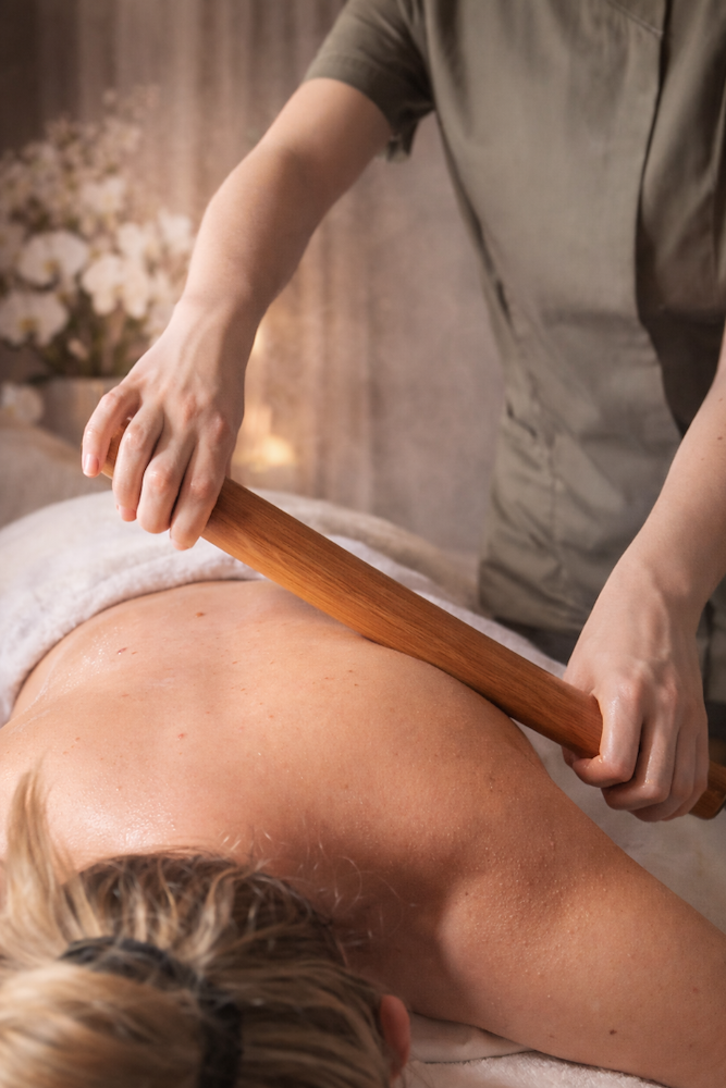 A therapeutic and holistic massage experience. The use of bamboo sticks promotes healthy circulation, soothes tense muscles, induces deep relaxation, and aids in detoxification. Bamboo is traditionally known to symbolize strength, fertility, youth, success, and inner peace.